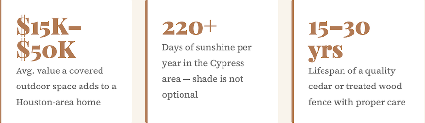 Let’s be honest, if you’ve ever tried to enjoy your Cypress backyard in July without any shade, you already know the answer.